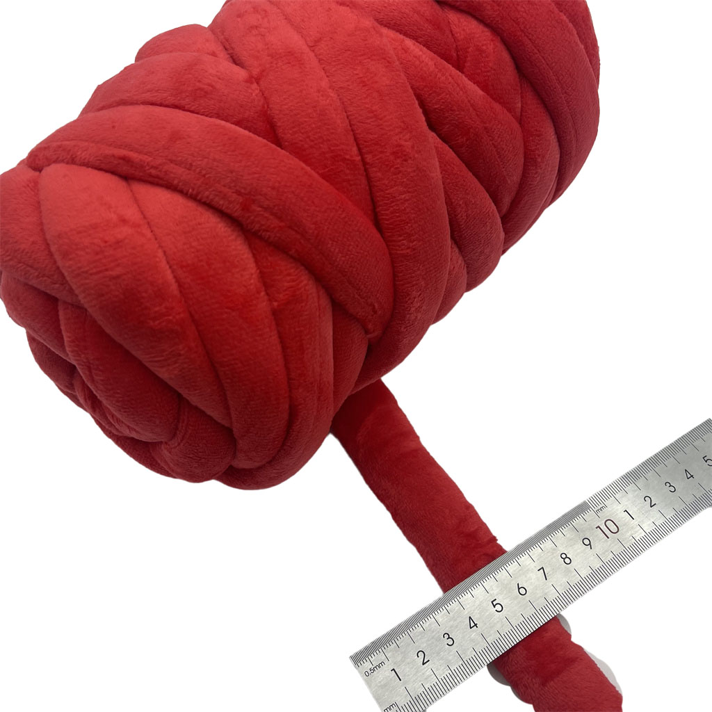 Dette produkt er et engros-fabriksproduceret polyestergarn, specielt designet til fingerstrik. Garnet er konstrueret som et fløjlsrør med en ensartet diameter på 2 cm, hvilket giver det en væsentlig, tredimensionel form. Dens sammensætning er en blanding af polyester og bomuld, der kombinerer polyesterens strukturelle stabilitet og spændstighed med det naturlige strejf af bomuld. Denne materialekombination bidrager til garnets definerede form og taktile egenskaber. Den præformede rørformede struktur letter fingerstrikprocessen, hvilket giver mulighed for effektiv skabelse af teksturerede stoffer og tilbehør uden behov for traditionelle værktøjer. Dens dimensioner og konstruktion gør den velegnet til at producere genstande med en voluminøs og blød tekstur.