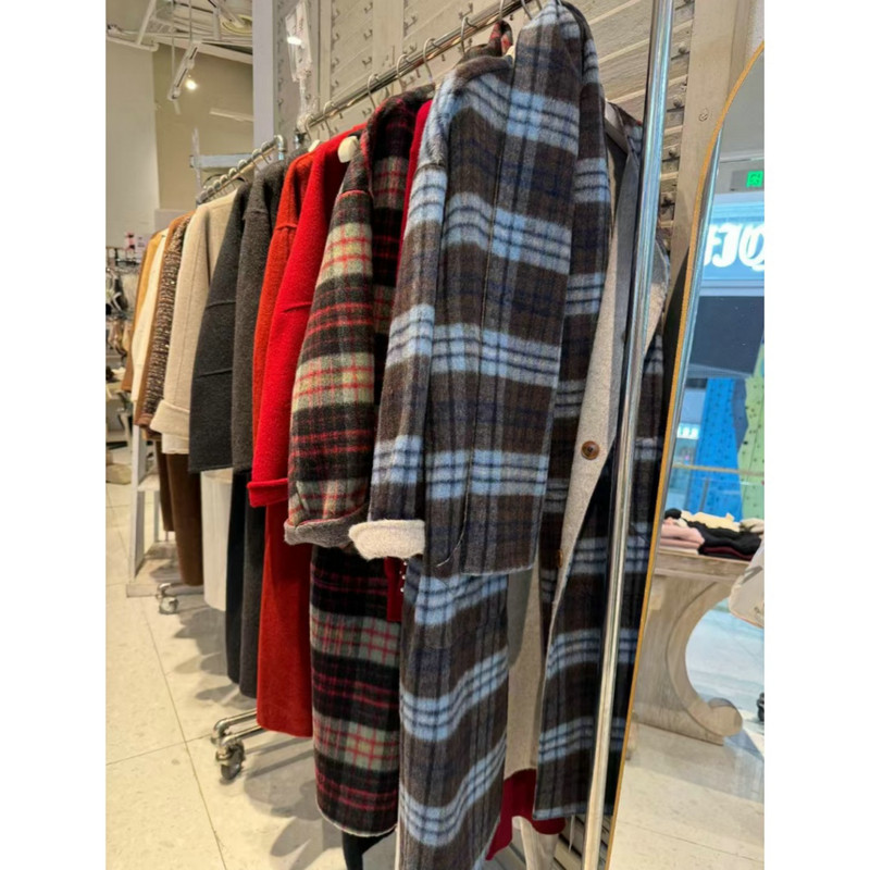 Dette stof, betegnet som artiklen ZZH25004, er et kraftigt vævet tekstil, der består af 50 % uld og 50 % andre fibre. Med en masse pr. arealenhed på 950 g/m viser materialet betydelig tæthed og tykkelse. Overfladen har et plaidmønster, der kombinerer lyserøde, brune og hvide toner i en struktureret gitterformation. Denne vægtspecifikation bidrager til stoffets vindmodstand og varmeisoleringsevne. Uldblandingssammensætningen påvirker tekstilets temperaturregulerende egenskaber. Disse tekniske parametre gør dette vævede stof anvendeligt til vinterfrakker, hvor der kræves væsentlig beskyttelse mod lave temperaturer.