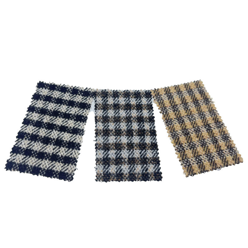 Dette stof, betegnet som artikel 3811, er et tweed-tekstil bestående af 10% uld og 90% andre fibre. Med en masse pr. arealenhed på 550 g/m præsenterer den en tungvægtskonstruktion. Den brune overflade har et ternet mønster integreret i en twillvævet base, hvilket skaber diagonale linjer under gitterformationen. En børstefinish er blevet påført stoffet, hvilket hæver fibrene for at skabe en blød overfladetekstur. Denne teknik ændrer stoffets taktile egenskaber og bibeholder samtidig den strukturelle integritet af kipervævningen. De tekniske specifikationer resulterer i et materiale med kombineret visuel mønsterdefinition og forbedret overfladehåndfølelse, hvilket gør det anvendeligt til pelsfremstilling, hvor både holdbarhed og taktil komfort er påkrævet.