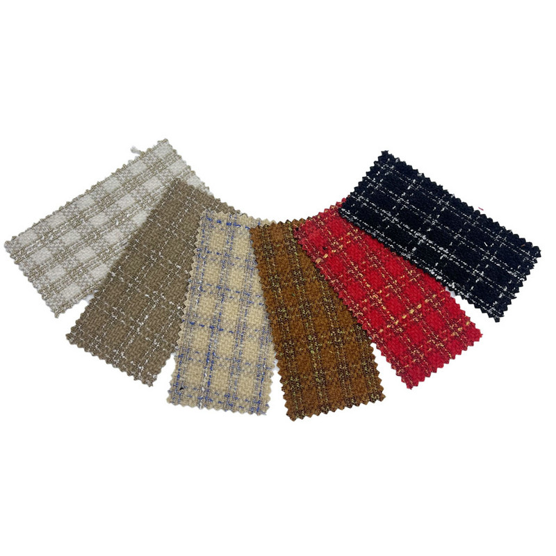 Dette stof, betegnet som artikel 3764, er et vævet tweed-tekstil sammensat af 100% andre fibre. Med en masse pr. arealenhed på 560 g/m præsenterer den en mellem- til tung konstruktion. Overfladen kombinerer et ternet mønster med en chenillestruktur, der har gennemgået en børsteproces. Denne efterbehandlingsteknik hæver fibre fra chenillegarnene, hvilket skaber en blød overfladetekstur. Tjekdesignet er dannet gennem samspillet mellem farvede garner i vævningsprocessen, hvilket bibeholder geometrisk præcision. Disse fremstillingsteknikker resulterer i et stof med både visuel mønsterdefinition og en karakteristisk taktil kvalitet. Denne vævede tweed er anvendelig til dametøj, hvor der kræves overfladeinteresse og strukturel integritet.
