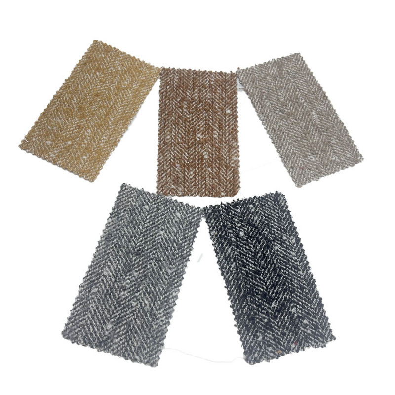 Dette stof, betegnet som artikel 3906, er et tweed-tekstil bestående af 30% uld og 70% andre fibre. Med en masse pr. arealenhed på 620 g/m præsenterer den en tungvægtskonstruktion. Den grå og hvide overflade kombinerer et sildebensmønster med en bobletekstur, hvilket skaber en sammensat effekt gennem specialiserede væveteknikker. Denne metode producerer både de karakteristiske V-formede motiver og lokaliserede hævede områder på tværs af stoffet. Uldblandingssammensætningen bidrager til stoffets varmeisolerende egenskaber og strukturelle modstandsdygtighed. Disse tekniske egenskaber resulterer i et materiale med forbedret tredimensionel tekstur og betydelig tæthed, hvilket gør det anvendeligt til vintertøj, hvor der kræves forhøjet varme og overfladeinteresse.