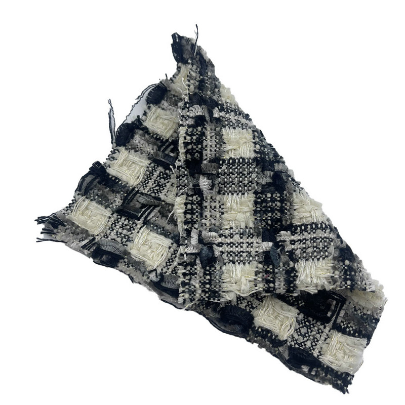 Dette stof, betegnet som artikel 22042, er et vævet tweed-tekstil, der består af 48% akryl, 36% polyester og 16% nylon. Med en masse pr. arealenhed på 450 gsm præsenterer den en mellem- til tung konstruktion. Overfladen har et fint sort og gråt plaidmønster opnået gennem præcise væveteknikker, hvilket skaber en ensartet gitterstruktur. Akryl bidrager til stoffets loft, polyesteren giver formstabilitet, og nylonet øger holdbarheden. Denne fiberkombination resulterer i et materiale med strukturel integritet og modstandsdygtighed over for slid. Disse tekniske specifikationer gør denne vævede tweed anvendelig til pelsfremstilling, hvor der kræves defineret mønster og langsigtet ydeevne.