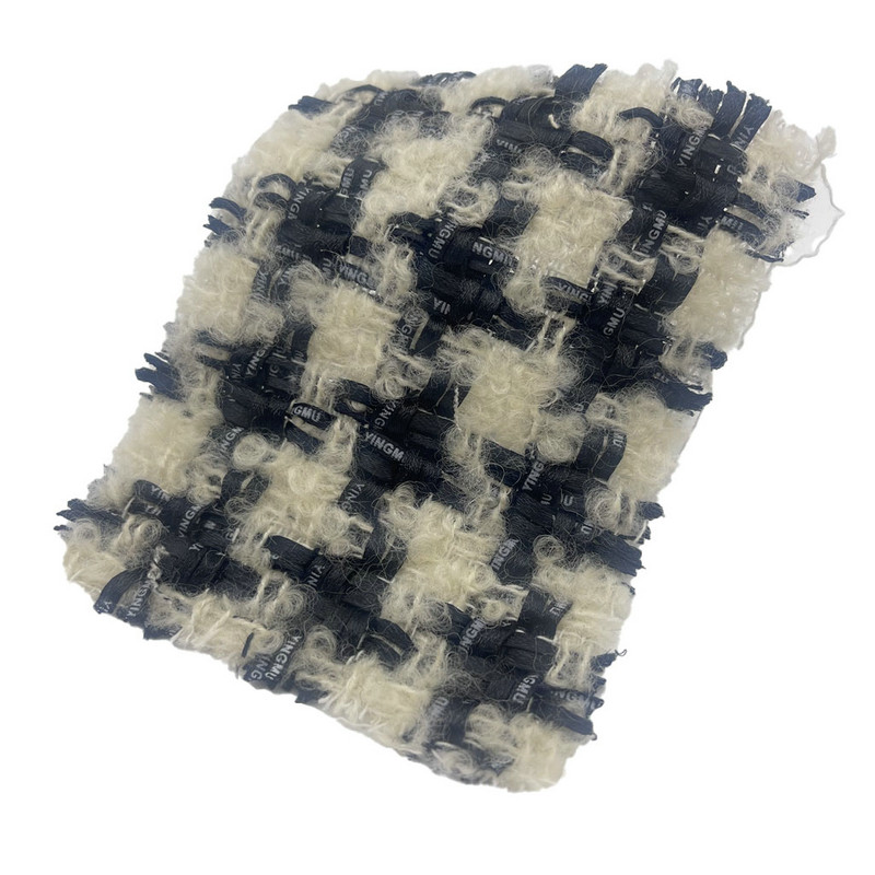 Dette stof, betegnet som artikel 23548, er et uldtweed-tekstil, der består af 38% polyester, 36% uld og 26% bomuld. Med en masse pr. arealenhed på 410 gsm præsenterer den en mellemvægtig konstruktion. Det råhvide og sorte farveskema er vævet ind i et plaidmønster, forstærket af en overfladebørsteteknik, der skaber en forhøjet bamse-lignende tekstur. Denne efterbehandlingsproces danner en tæt, kortluvet overflade, der ændrer stoffets taktile egenskaber. Fibersammensætningen bidrager til stoffets strukturelle stabilitet og fugtstyring. Disse egenskaber gør denne børstede tweed anvendelig til beklædningsgenstande, der kræver både visuel mønsterdefinition og karakteristisk overfladetekstur.