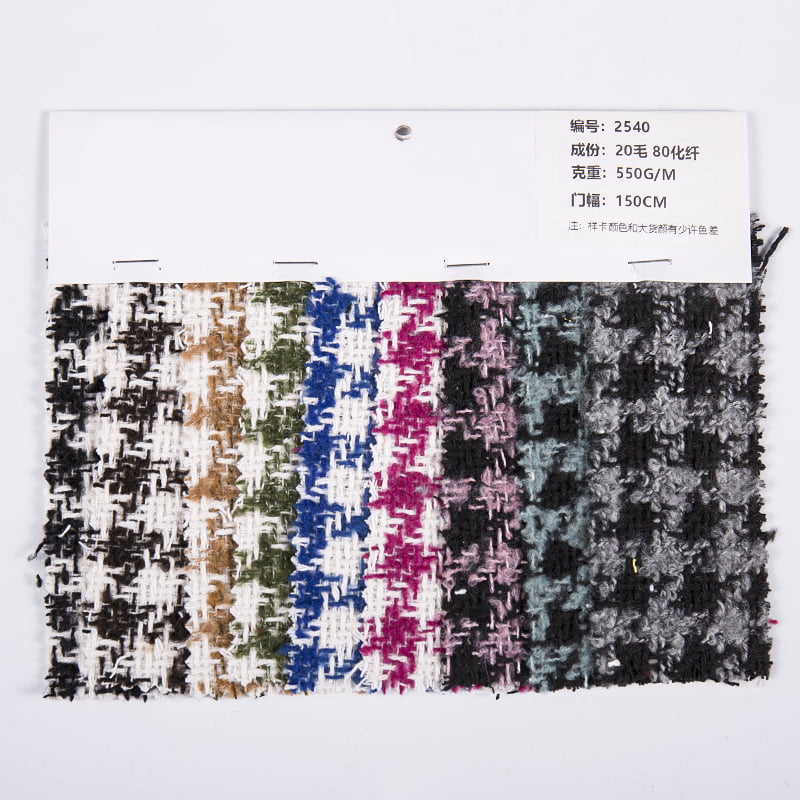 OEM/ODM Sweater Loop Garn Houndstooth Uld Tweed Stof 2540. Vi har mere end 20 års brancheerfaring og er kendt for stoffer og garn af høj kvalitet.